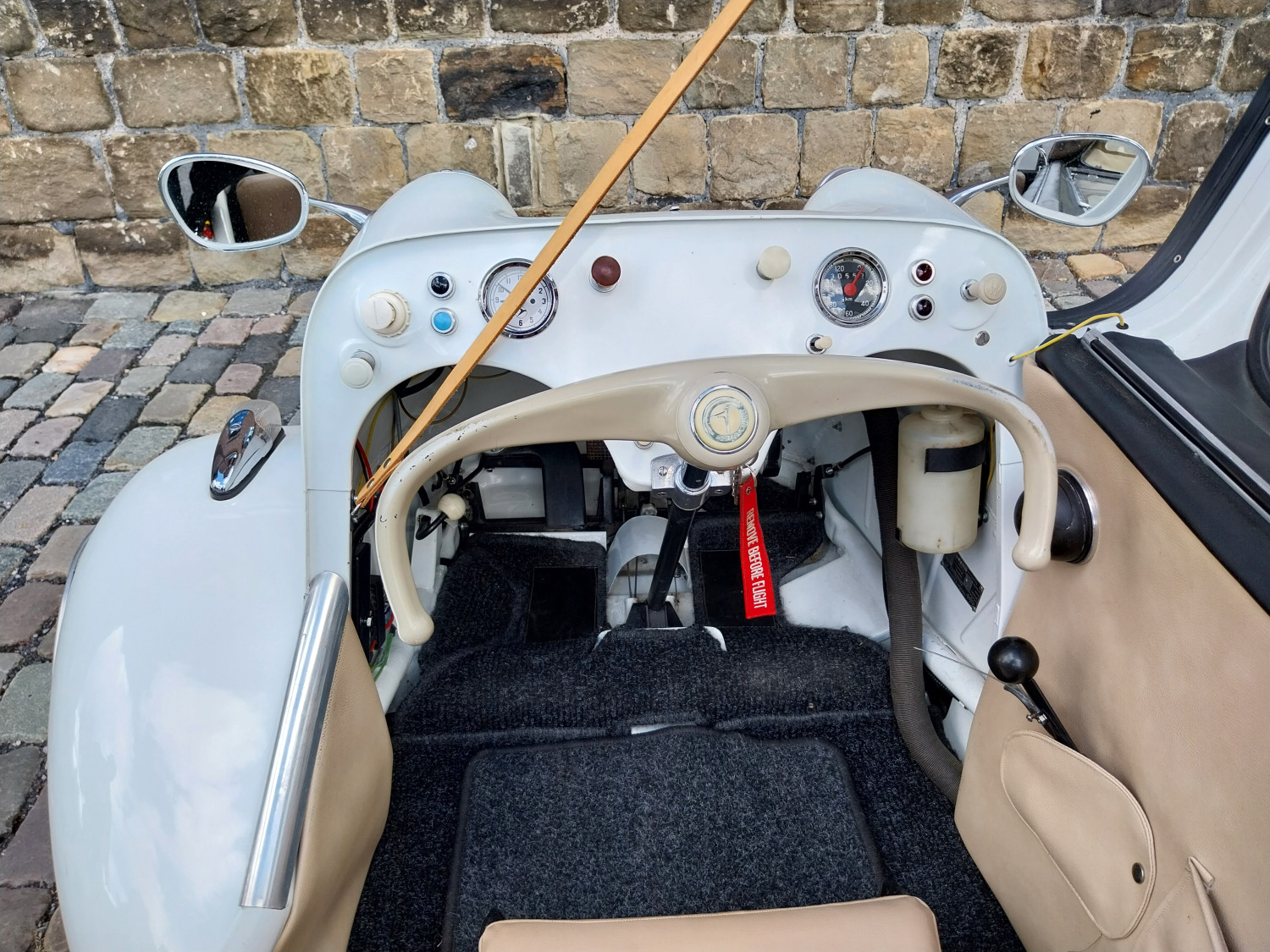 Der hier angebotene KR200, dessen erster Halter, wie aus der Dokumentation hervorgeht, ein Bandmitarbeiter der Firma Messerschmitt in Regensburg war, wurde im Jahr 2007 restauriert und neu aufgebaut, inklusive Motor. Eine Foto-Dokumentation ist vorhanden.