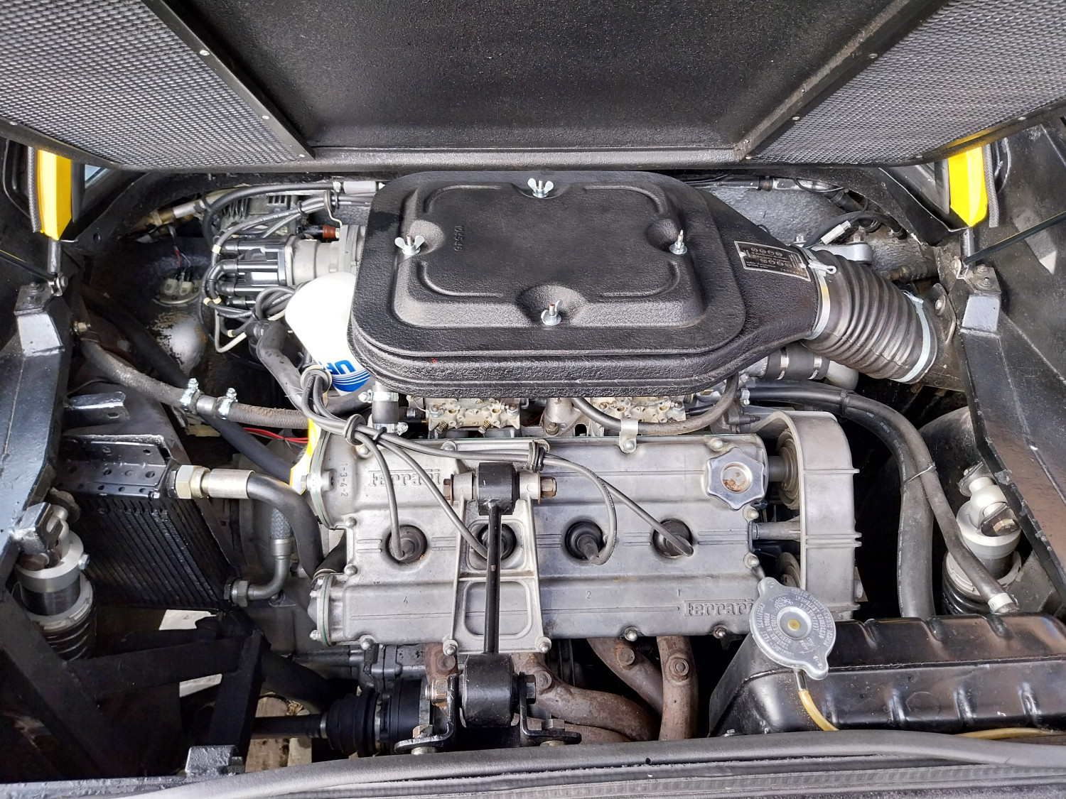 Dieser, hier angebotene 308 GTB, in seltenem, wie ikonischem ‚Modena Giallo‘, wurde zunächst nach Östereich ausgeliefert bevor er seinen Weg in die Hände von Mitgliedern des niederländischen Ferrari Clubs in Holland fand. 2016 kam er nach Deutschland, wurde regelmäßig gefahren und im Frühjahr 2025 einer Generalüberholung mit Zahnriemenwechsel unterzogen. Bei dieser wurde auch der defekte Originalmotor durch einen instandgesetzten GTS Motor (ohne Trockensumpfschmierung) ausgetauscht. Nun präsentiert er sich mit 4 Doppel-Weber-Vergasern und einem super Sound durch ein Edelstahl-Sport-Auspuff-System.
