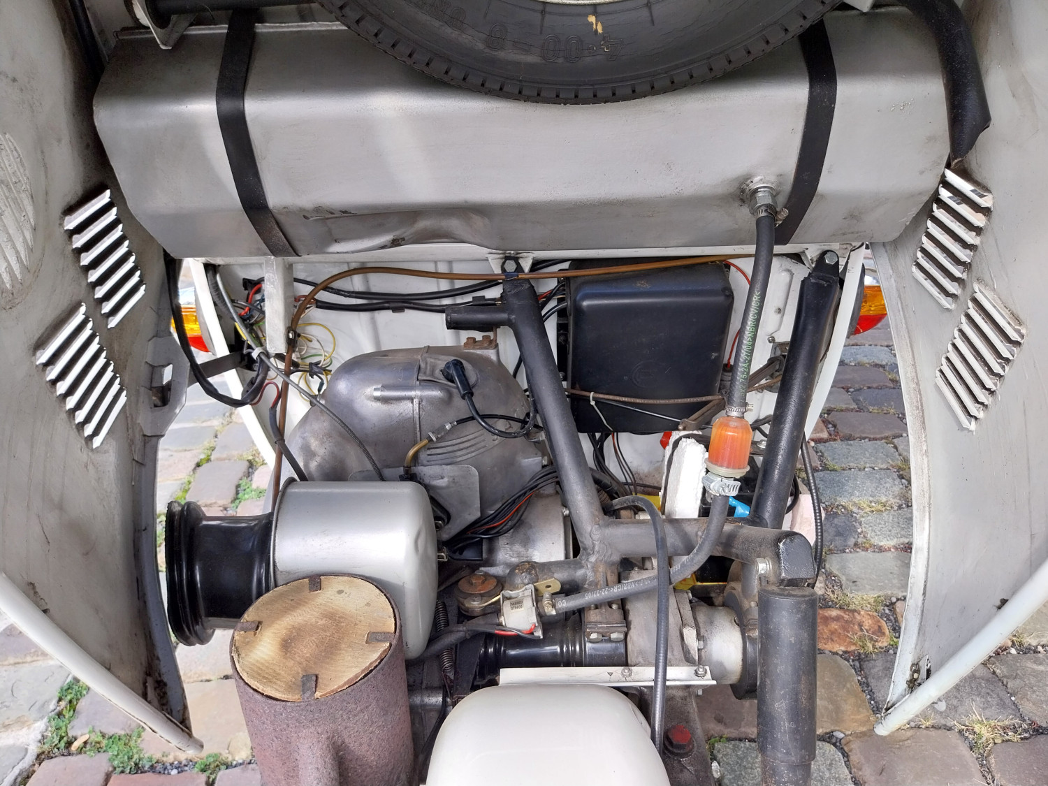 Das Fahrzeug ist optisch und technisch in einem guten Zustand mit einer charmanten Patina, die seinem Alter entspricht. Die Plexiglashaube weist kleine Kratzer auf. An einer Stelle in der hinteren Rundung der Kuppel ist sie außerdem ein wenig blind. Der KR200 ist aus vierter Hand. Seine umfangreiche und beeindruckende Fahrzeughistorie und die durchgeführten Serviceleistungen sind dokumentiert.