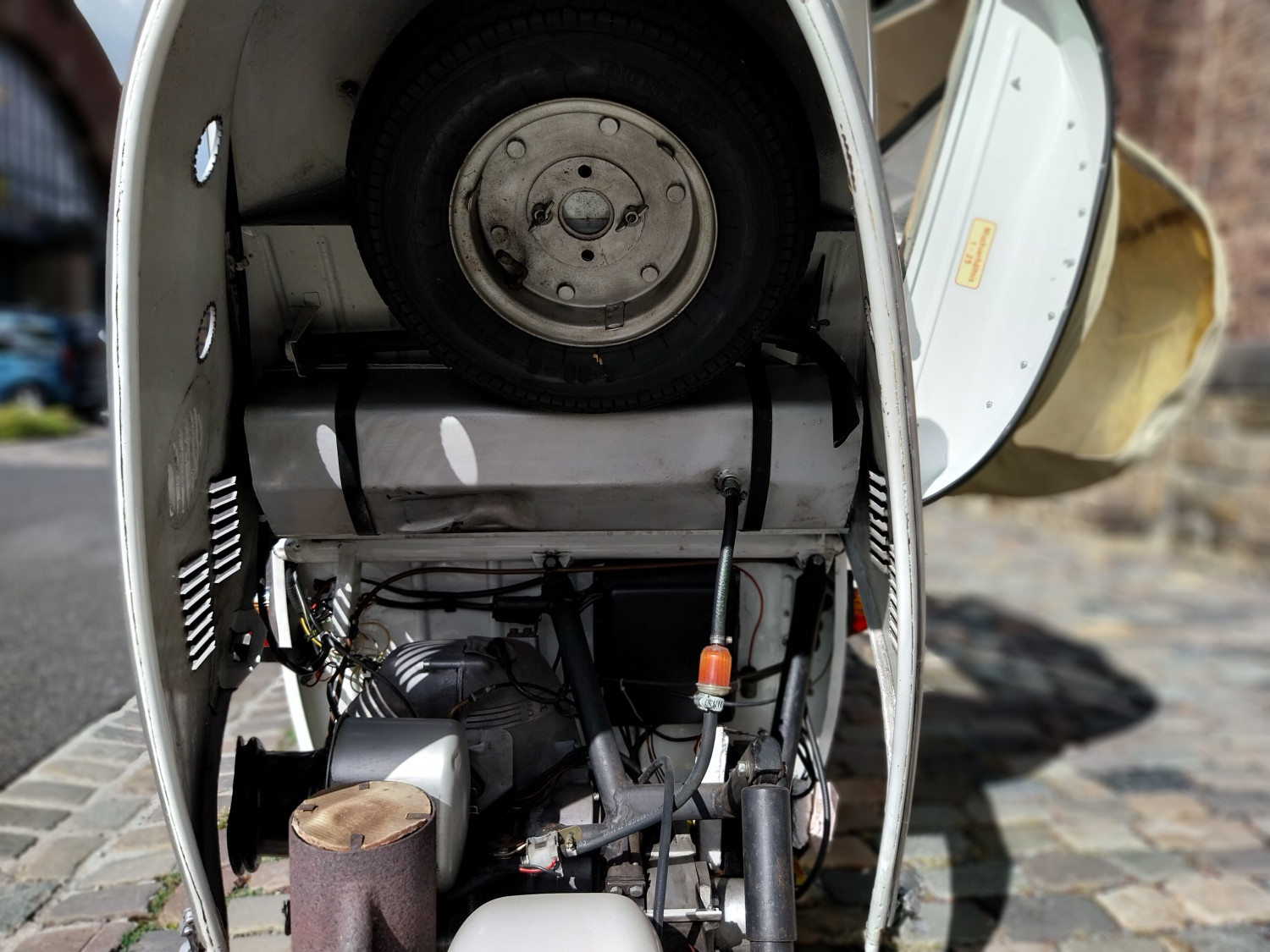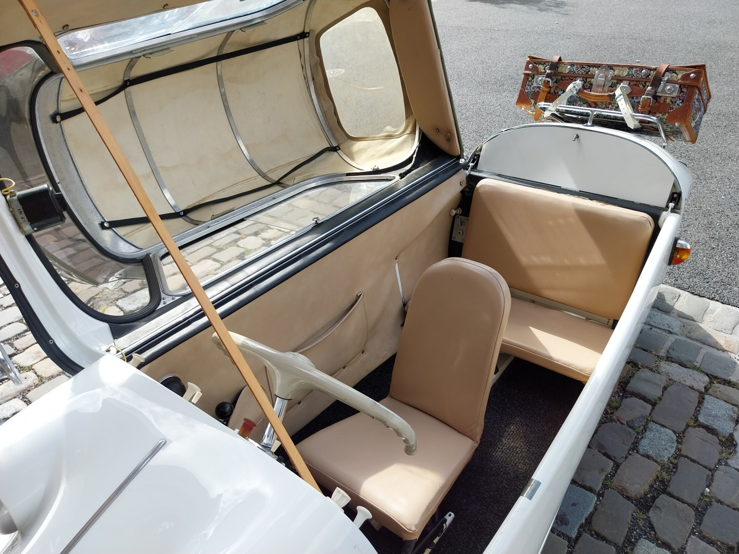 Der hier angebotene KR200, dessen erster Halter, wie aus der Dokumentation hervorgeht, ein Bandmitarbeiter der Firma Messerschmitt in Regensburg war, wurde im Jahr 2007 restauriert und neu aufgebaut, inklusive Motor. Eine Foto-Dokumentation ist vorhanden.