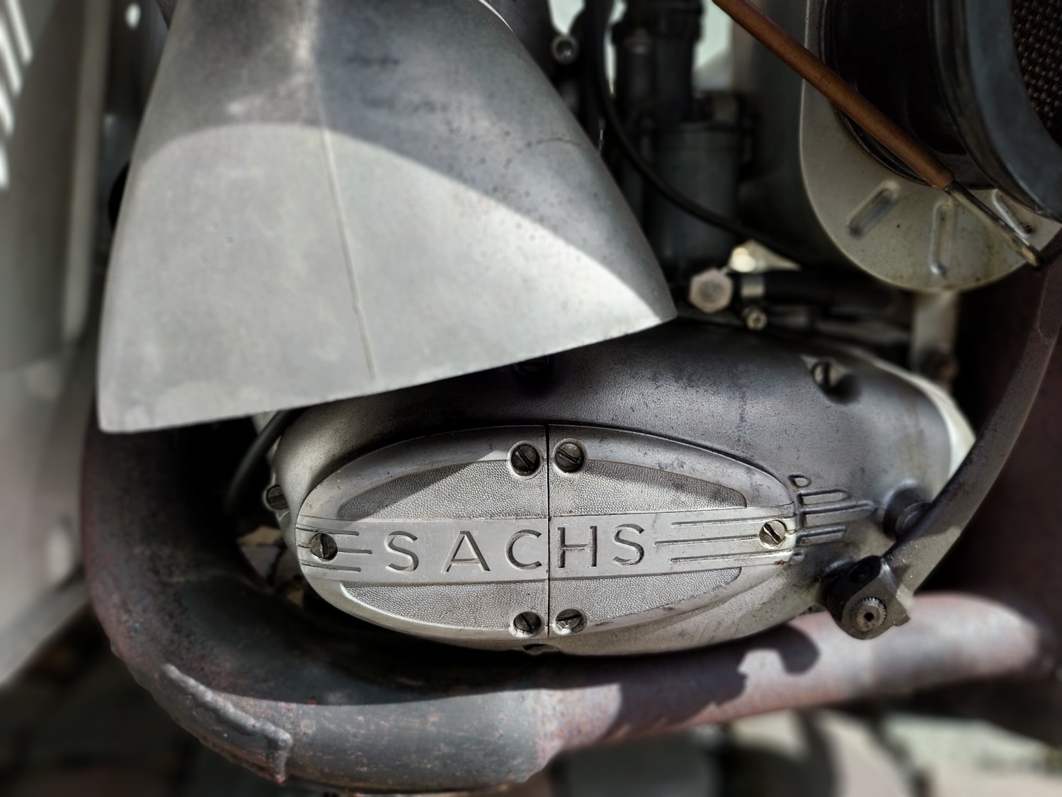 Motor: SACHS-Motor, Zweitakter, vollständig in Gummi gelagert, Bohrung 65 mm, Hub 58 mm, Verdichtung 1:6,6